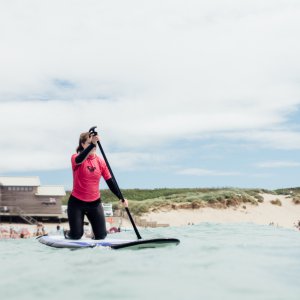 The SUP race will be held in the sea and participants will be required to paddle straight out against the waves then around a buoy and back to the beach.