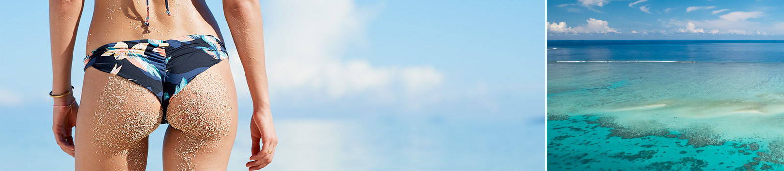Swimwear: bikini, rash vests, flip flops and beach accessories